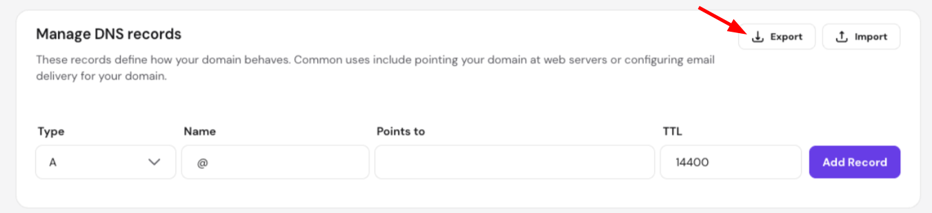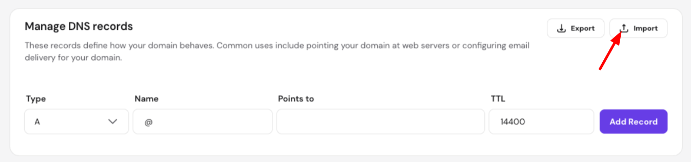 hPanel also allows you to bulk import and export DNS records using a standard BIND zone file.