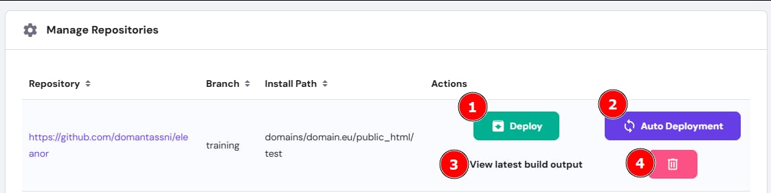 Deploys your already created repository