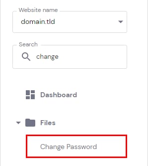 Your hosting password is used to connect to your hosting via FTP or SSH. This password can be quickly changed through your website’s hPanel by accessing Websites → Dashboard, searching for Change password on the left sidebar, and clicking on it: