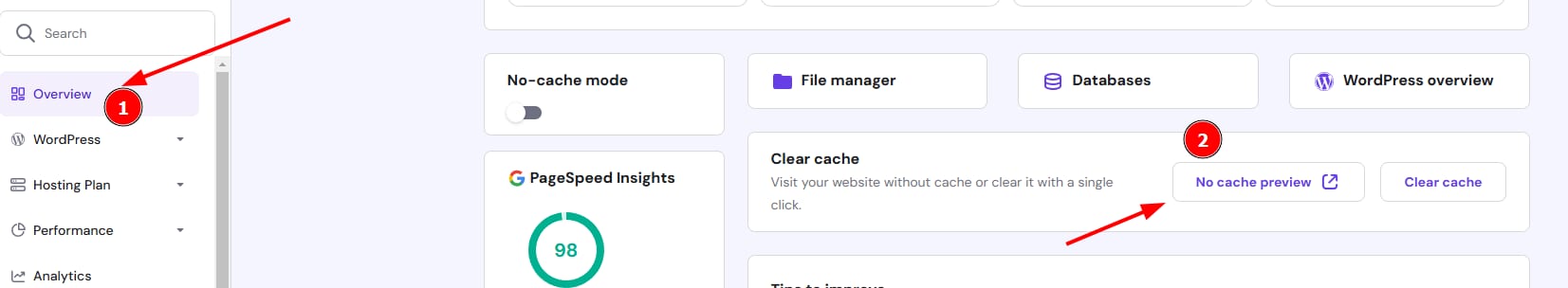 To view the website without any cache, navigate to your hpanel > Websites > Dashboard > Overview > No cache preview