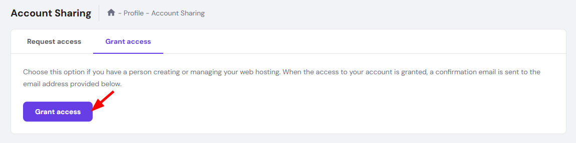 When everything is good to go, click on Grant Access. A confirmation message will be sent to the user; they must click on the link to be granted access to your account.