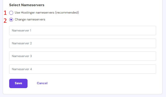 Use Hostinger nameservers (recommended) – choose this option to keep your domain pointed to Hostinger