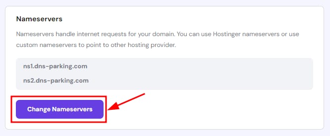 For domains registered in Hostinger, changing nameservers allows you to point your domain from Hostinger to any service, moving the DNS zone management to that service. Here’s how you can do it: