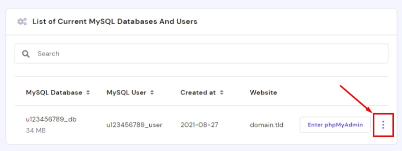 If you need more options, select your desired database and click the ⋮ button: