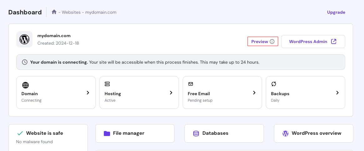 During this time, you may get a notification that “Your domain is connecting“. Fortunately, you can start building or migrating your website and review the changes right away, by using any of the methods described below.
