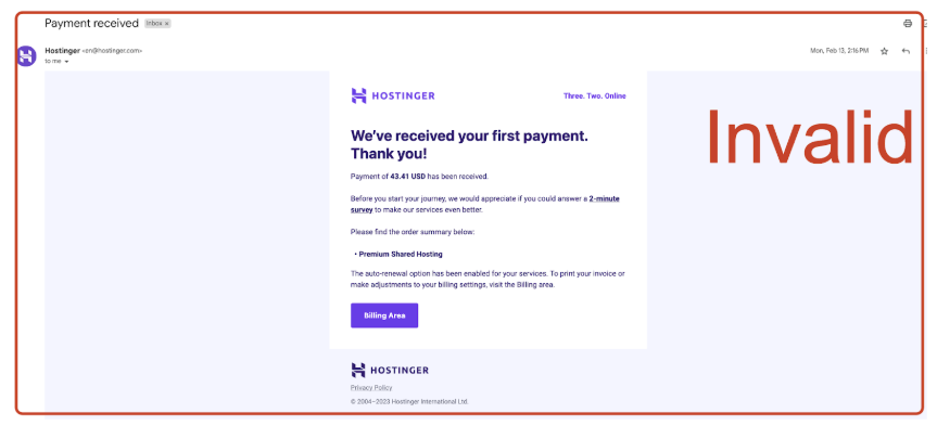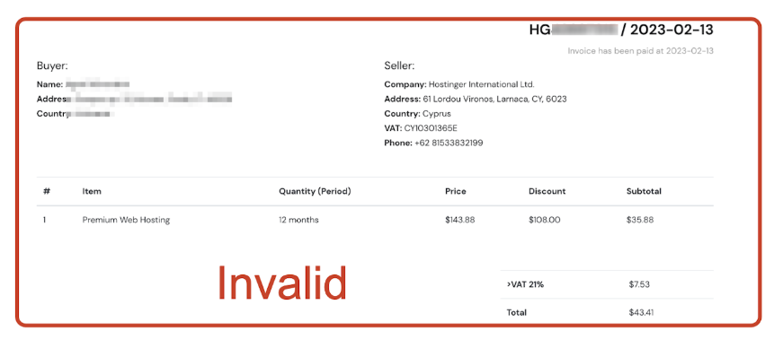 - Hostinger invoices or invoice screenshots