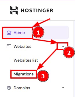 Click Home → click the drop-down under the Websites section and click Migrations: