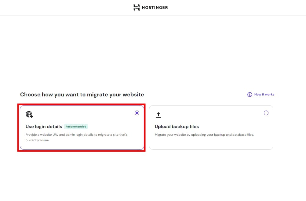 If your website meets these conditions, proceed to the next step. Otherwise, if it is already hosted at Hostinger, refer to the information below regarding internal migrations.