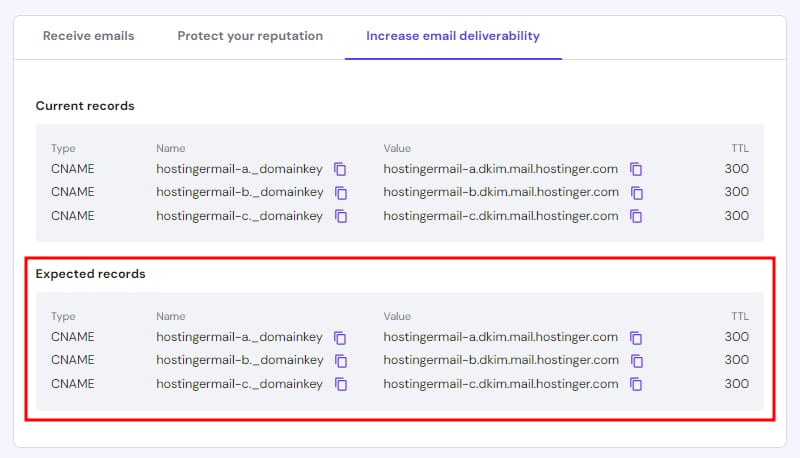 If you use Hostinger Email with your domain, the default DKIM records are the following:
