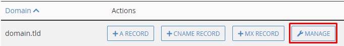 To create a TXT record, click on Manage next to your domain: