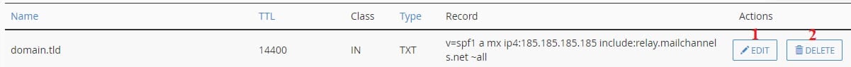 Once created, you can manage the TXT record on the Zone Editor using the following buttons: