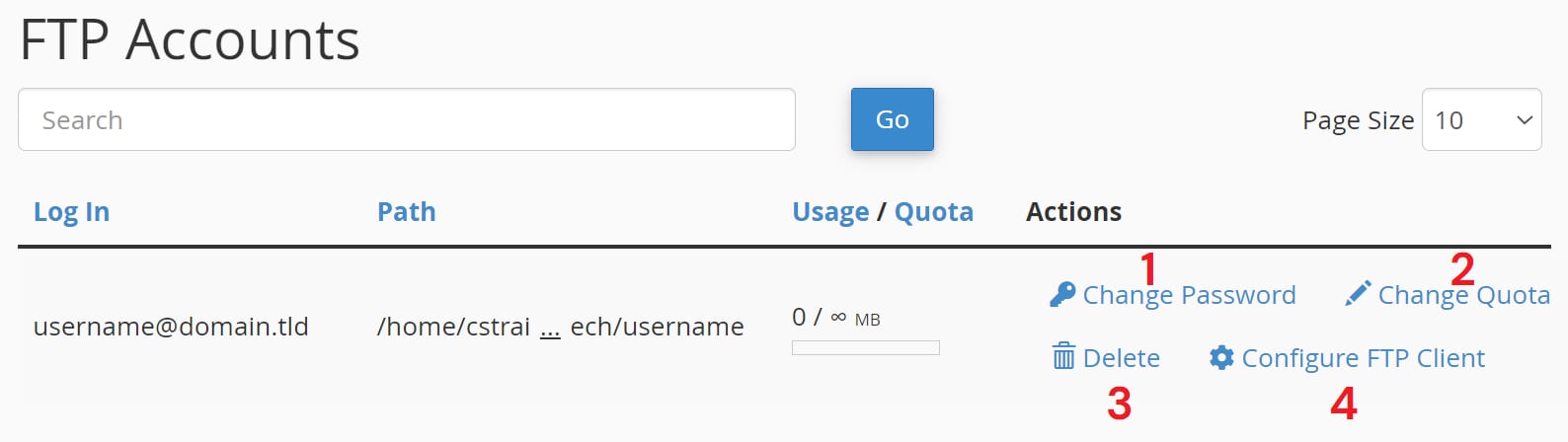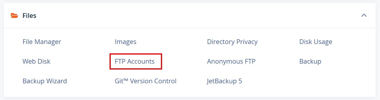 If you created an FTP account before (it can be done on the same page above), in the FTP Accounts section you will see presented with these buttons: