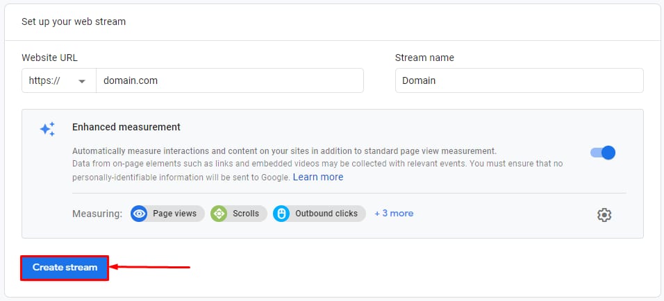 3. Fill in all the necessary fields and click on Create stream: