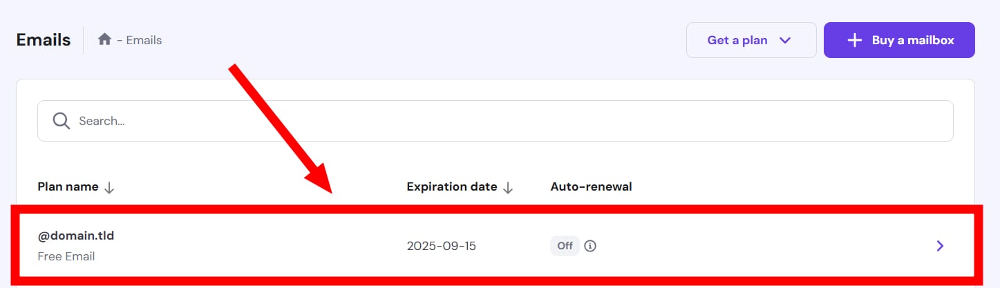 And then click anywhere in the plan linked to the domain or subdomain you want to manage emails for:
