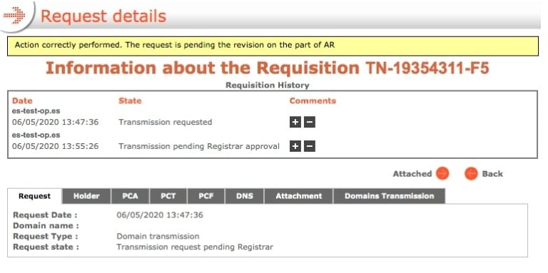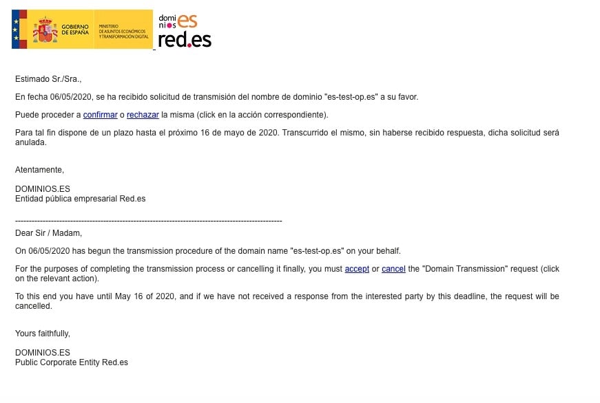 Finally, nic.es will review and verify the request. If everything is correct, it will be accepted. The process typically takes 5–7 days.