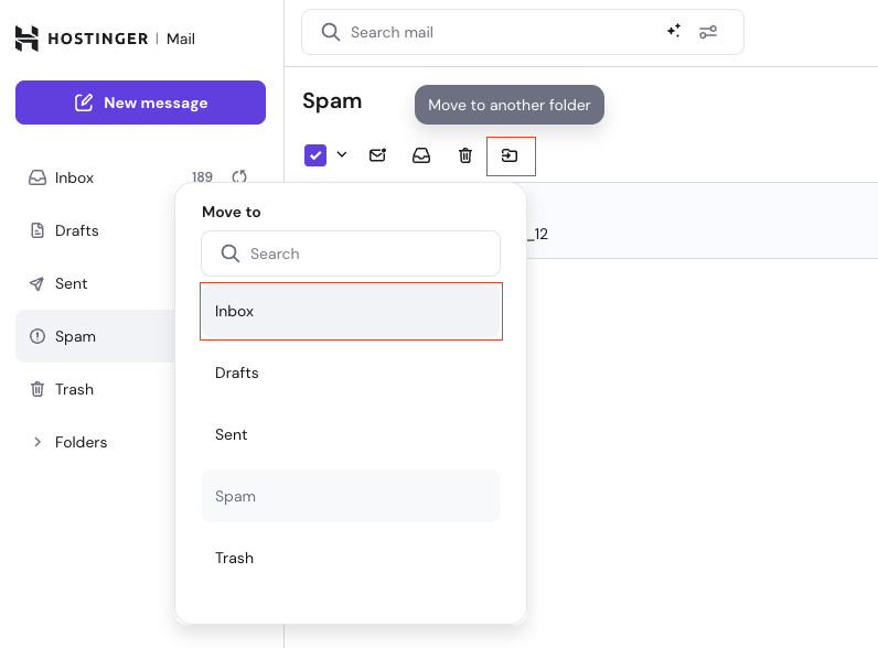 The Spam folder stores emails that are automatically flagged as suspicious.