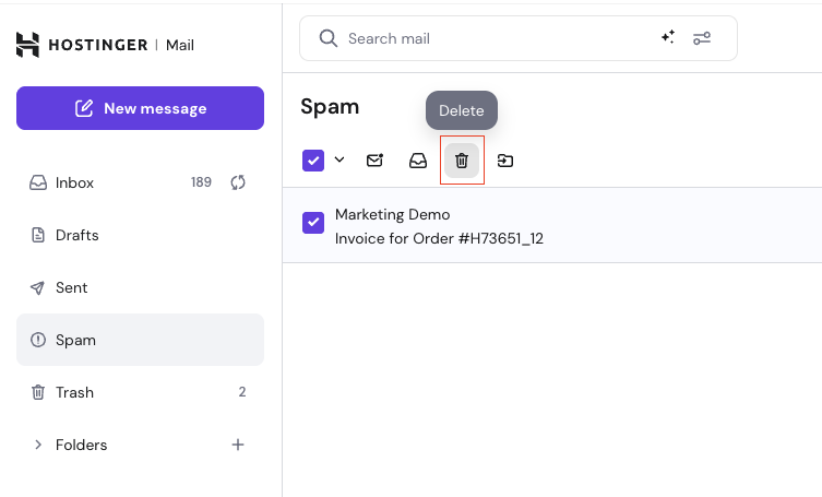 You can also delete emails immediately by clicking Delete while viewing messages in the Spam folder.