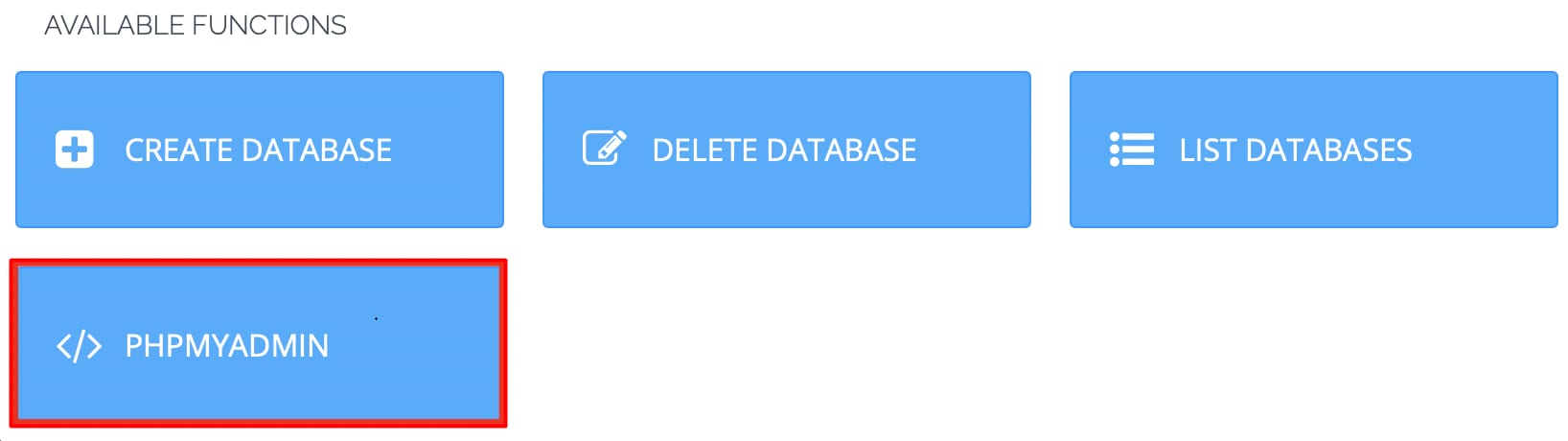 After you have your database created, all you need to do is access its phpMyAdmin. It can be done via a separate button in your CyberPanel: