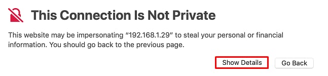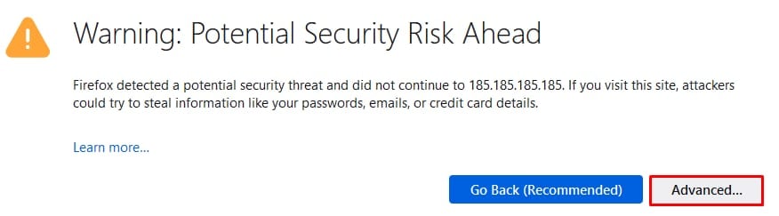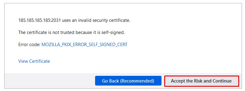 Below the error message, click on Advanced and select Proceed to [your-vps-ip] (unsafe). In case the Proceed button does not appear:
