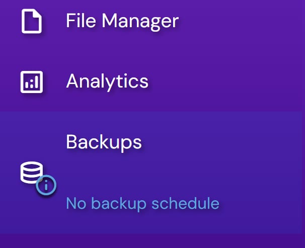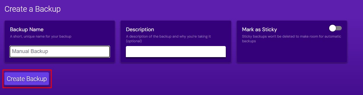 In the Backups section, you may create a manual backup by filling out its name and clicking on Create Backup.