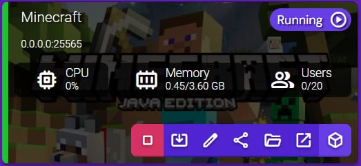 If you want to download a backup of your Minecraft server to a local device, first stop your server by accessing your Minecraft Instance and clicking on Stop Instance.
