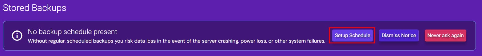 If you’d rather set up an automatic backup schedule, click on Setup Schedule at the top of the screen.