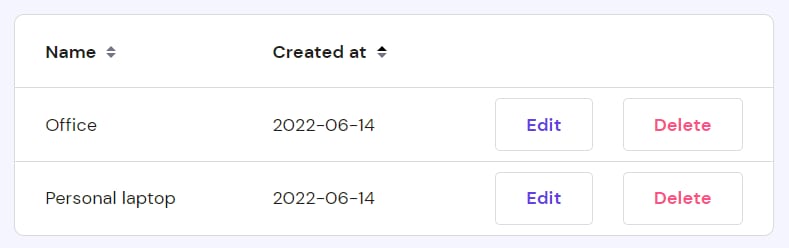 All the added SSH keys will be displayed on the same page, from where you can edit or delete them: