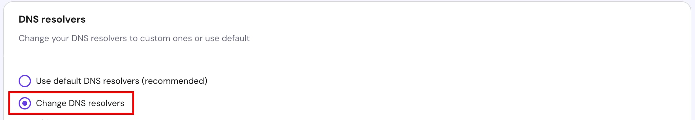 Next, scroll down and select Change DNS resolvers: