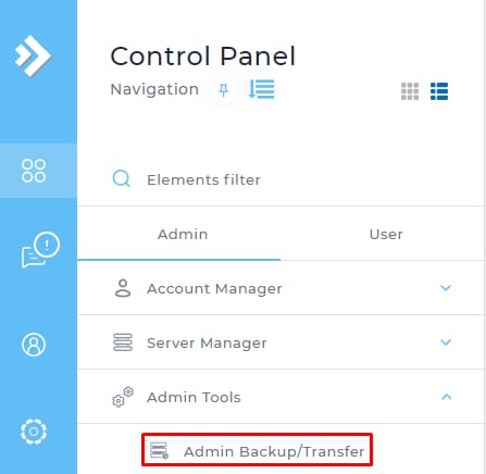 Navigate to the Admin Backup/Transfer section and click on Restore: