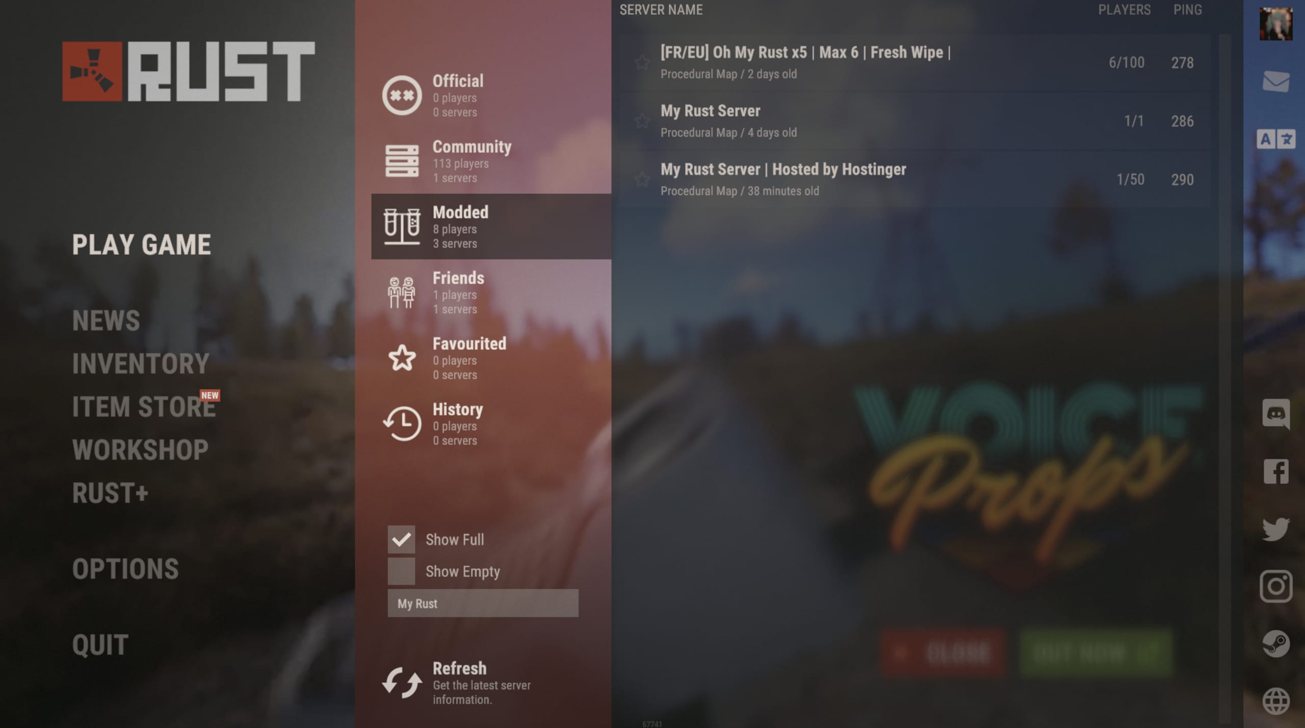 You can also see your server in either Community or Modded tabs, depending on if you installed Umod or not: