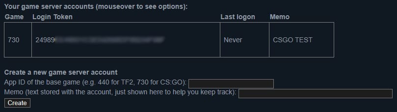 Click on Create to generate the token. Here is a list of IDs for Counter-Strike: