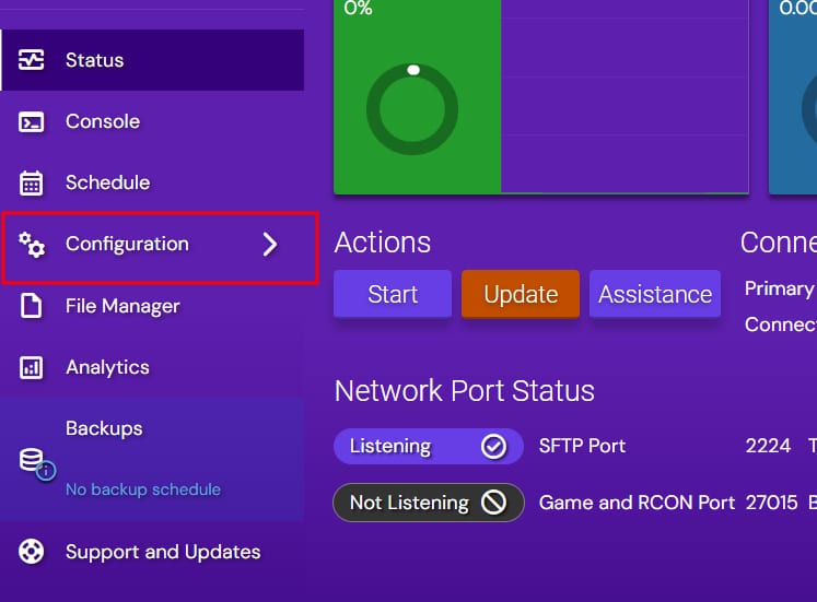 7. Once you have completed the initial server configuration, head back to the status page or console and click on Start. At first, you will get a “Could not complete action” error. This is normal, as server files are not yet installed: