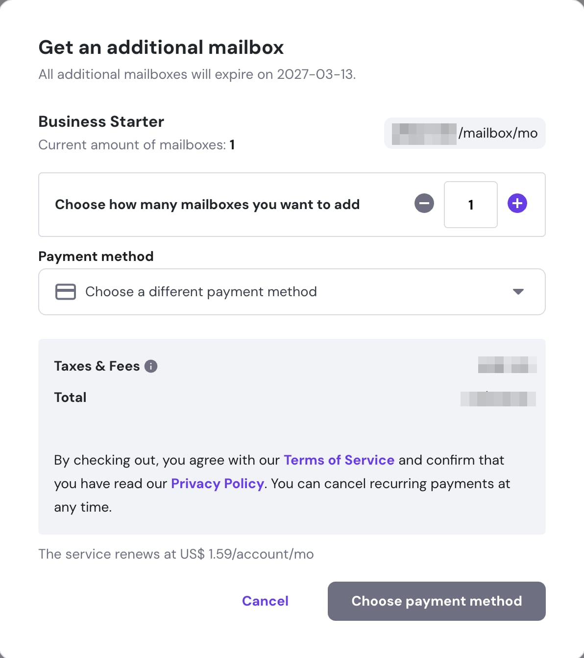 When you purchase additional mailboxes, all your email accounts must have the same expiration date. This means you can’t have different billing periods for each mailbox.