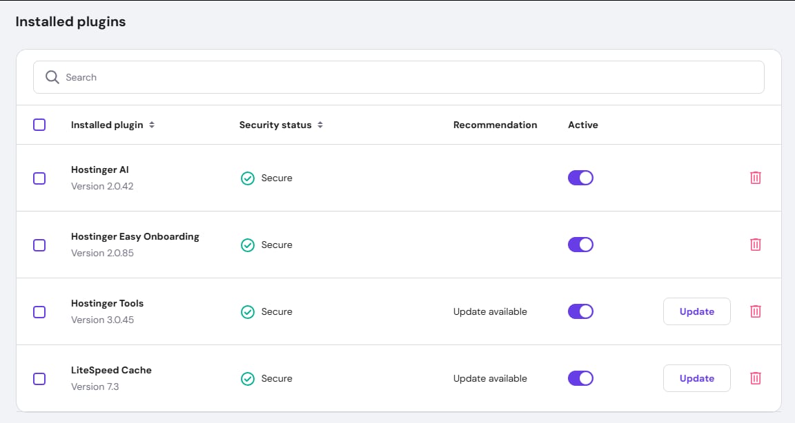Managing core updates, plugins and themes without entering the WordPress Admin area at Hostinger