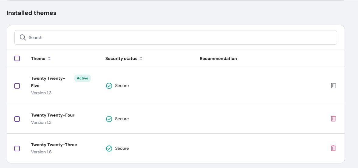 Scroll down to find a list of all the themes installed on your website. Here, you can see which ones are active and whether they are secure: