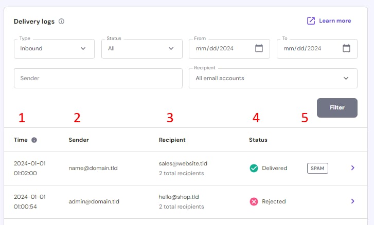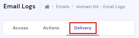 With the Delivery Logs feature for Hostinger Email, you can easily get detailed information about the delivery of the messages sent from your email accounts. Navigate to the Email Accounts section and choose Email Logs on the left sidebar: