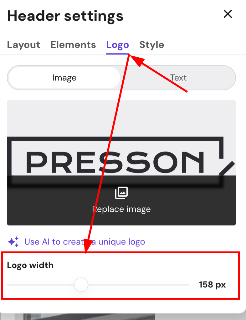 To resize the logo on a website created with Hostinger Website Builder, follow these steps 👇