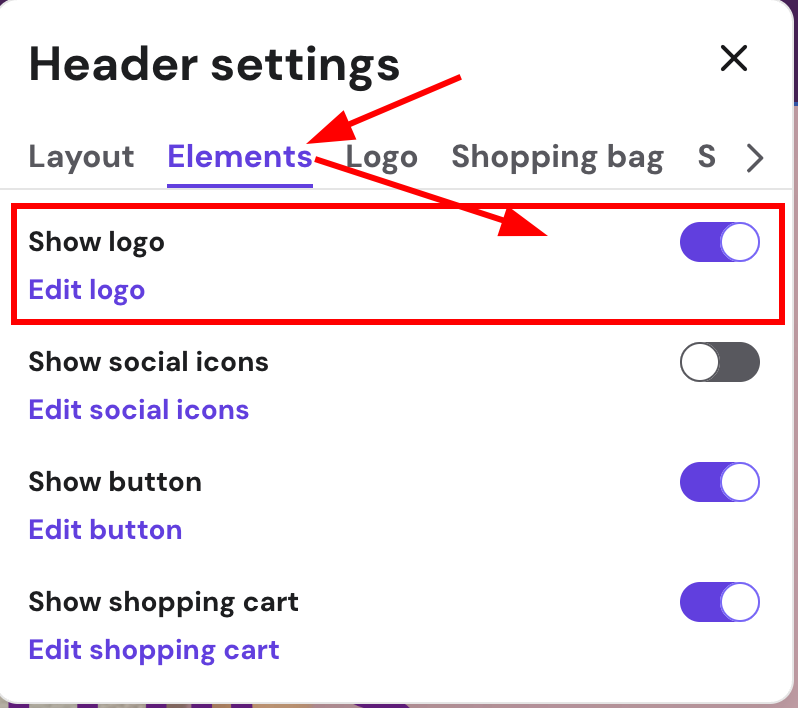 If the logo is disabled, go to Elements and click on Show logo: