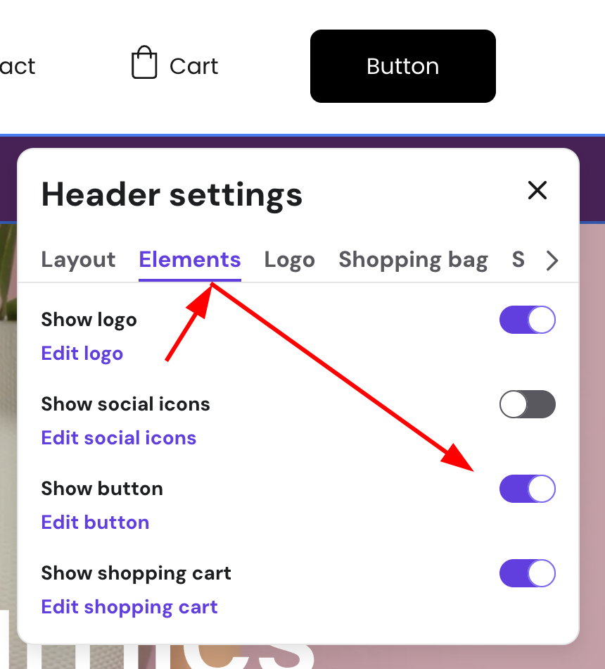 Then, click Elements, and toggle Show button on. You can customize how the button looks like by clicking Edit button: