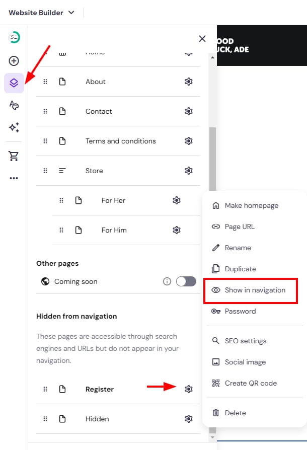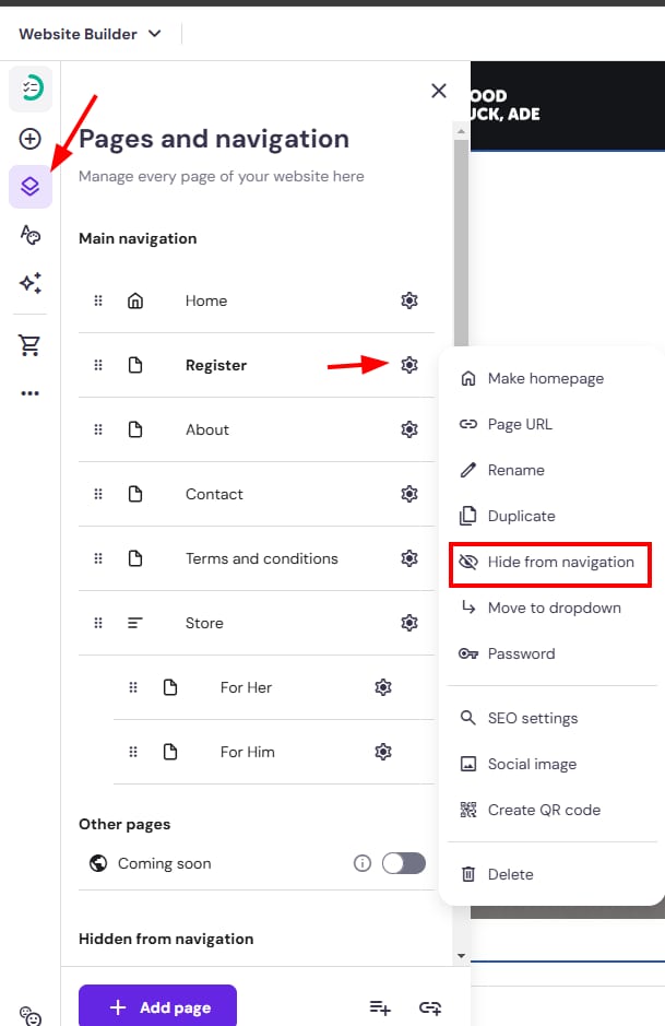 Hostinger Website Builder: How to Hide a Page From the Website’s Navigation Menu