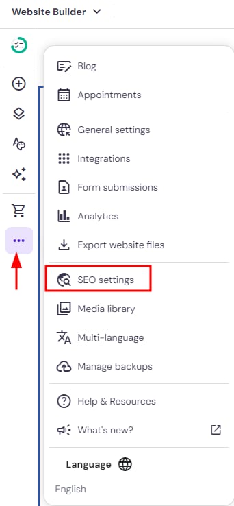 To add meta titles and descriptions to your website pages using Hostinger Website Builder, follow these steps: