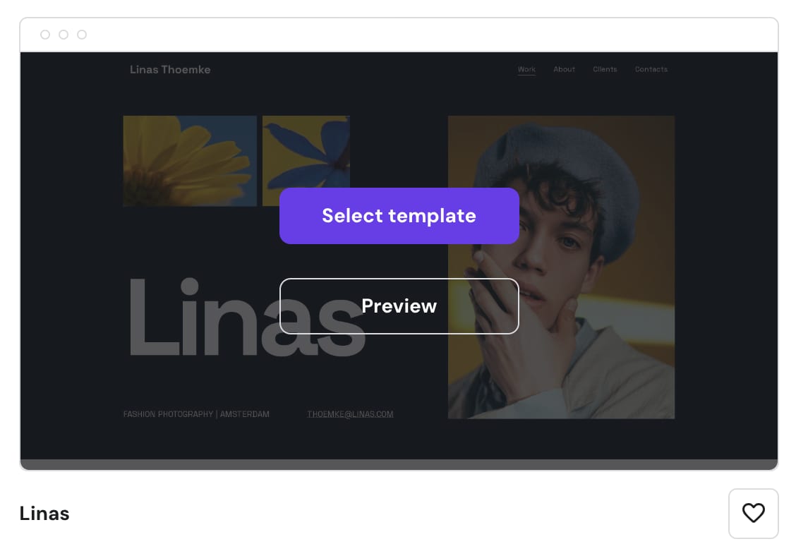 Hover over any template and click on Preview to check out its demo and explore it. Once you’ve made your choice, click Select template to begin working on your website: