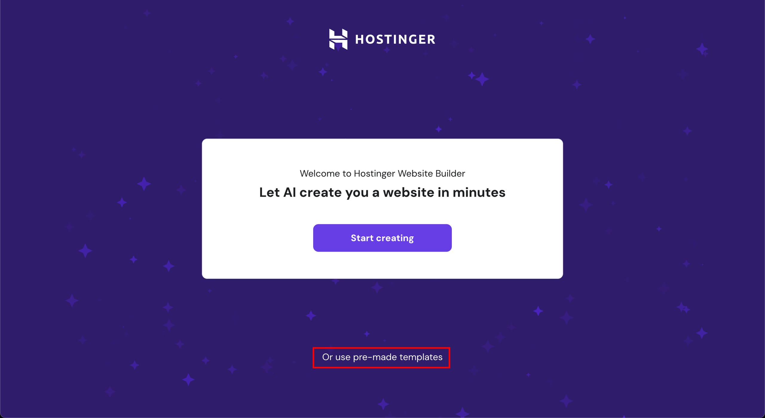 To build a website using a template, make sure to select Or use pre-made templates during setup.