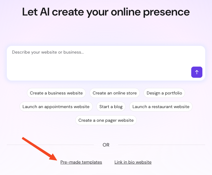 To start building your website with a template: