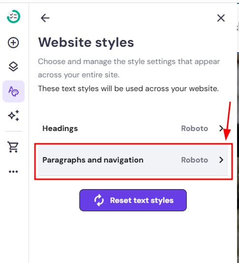 Changes made in the global text style settings affect all text elements across your website