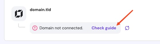 Go to the Websites section of hPanel, find your website in the list and click on Check guide next to the Temporary domain or Domain not connected message: