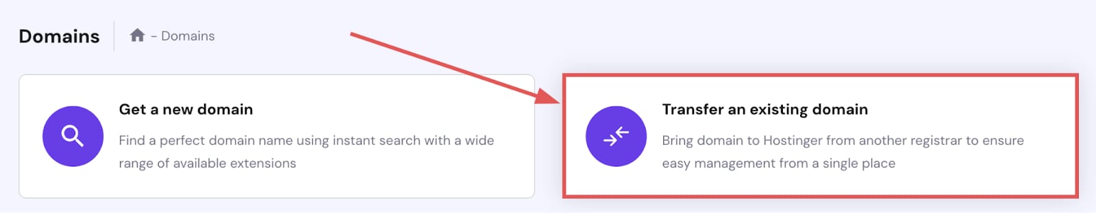 You can initiate a domain transfer to Hostinger in two ways 👇