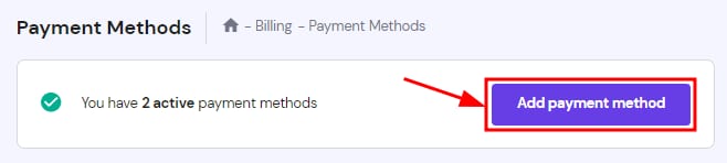 Go to the Billing → Payment Methods page on your hPanel and click on Add payment method: