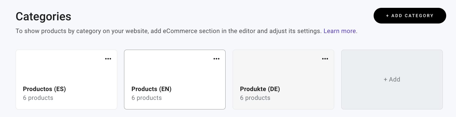 If you’ve enabled more languages for your website, remember that products can only be displayed on pages in the default language.