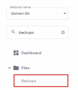 - In hPanel, go to Websites and click on Dashboard next to the website in question. Then, search for Backups on the left and click on it